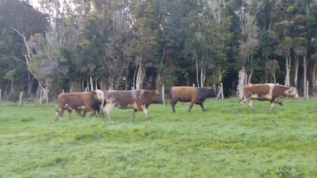 Muy buen lote de terneros, se dan puestos en la feria de Puerto Varas. Se pesan sin destara ya que tienen tres horas entre rodeo y viaje.